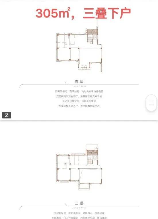 ●产品户型:两叠(上叠392㎡、下叠437㎡),三叠(上叠 285㎡、中叠279㎡、下叠305㎡)