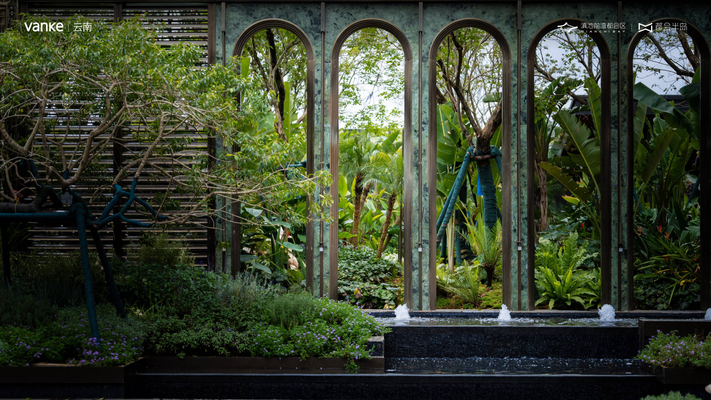 【南洋法式植物园大观】————超130种景观植物打造约3.2万方南洋法式风情园林、 3大中庭、7大宅间、1大河景、18个场景模块落位、乔木打造四季主题花园+最美归家大道,号称昆明的“小扶荔宫”,昆明首个把“植物园”做在园林里的项目;