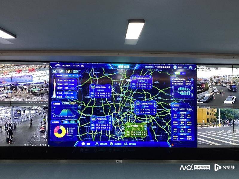 在广州市交通运输局指挥大厅内,一块巨大的电子屏上跳动着各类实时数据:列车到发信息、枢纽客流热力图、出租车运力分布、高速路网车速……