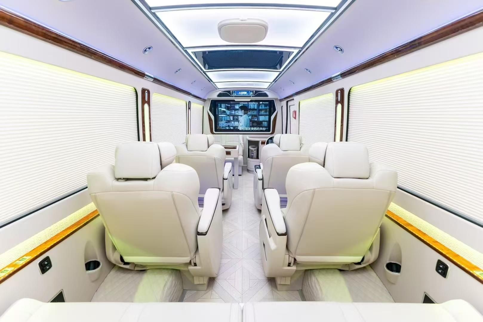 高级环绕声音响系统遍布全车,后排常配备独立娱乐影音系统,支持多屏互联,满足长途出行中的商务演示或休闲娱乐需求。