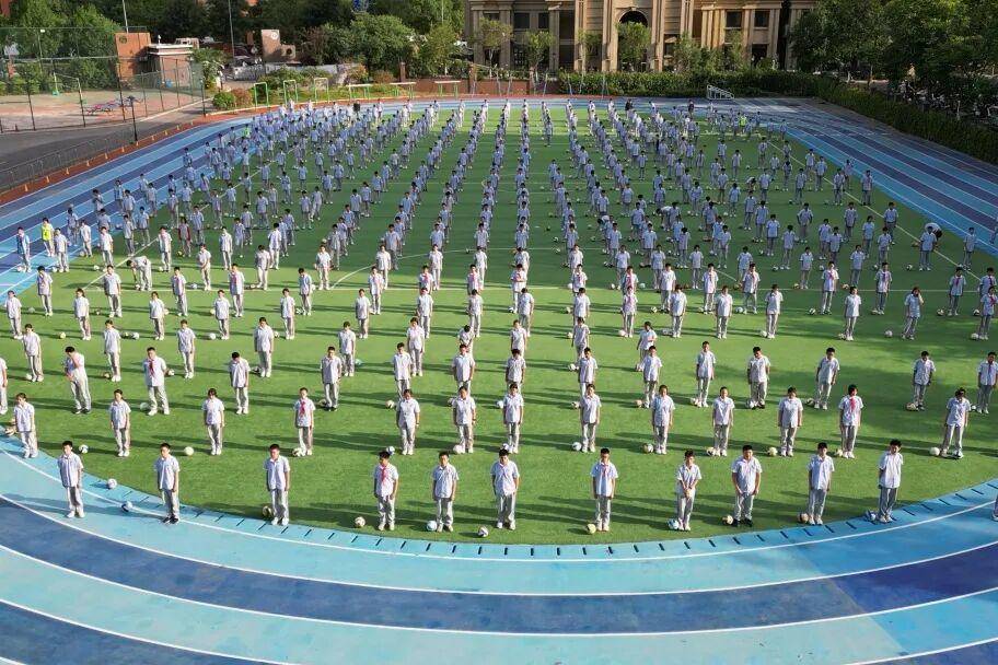 如果不是校门口的伸缩门半敞着,如果不是保安亭里坐着执勤人员,你很难把眼前这幅热闹景象和“学校”联系在一起。白天,这里是两千多名学生上课的地方;夜晚,它变成了附近几个小区的“共享健身房”。