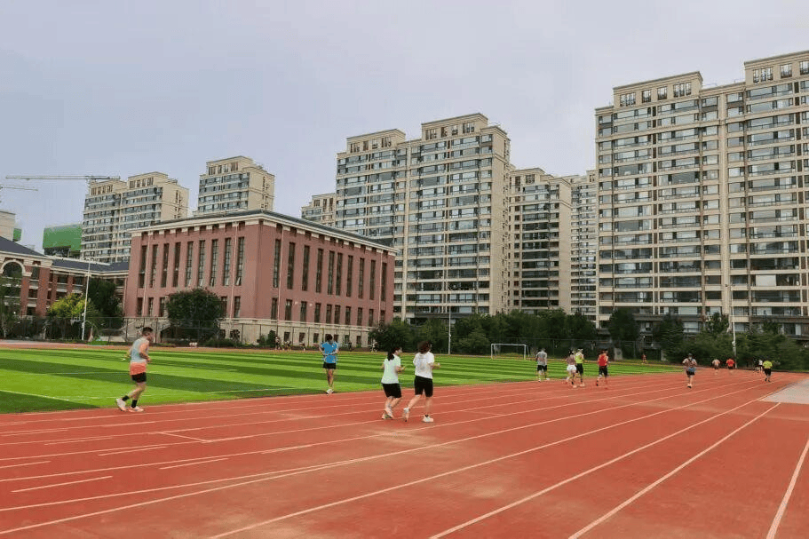跑道另一侧,一群孩子正跟着一位身着专业跑步装备的市民做间歇跑训练。她叫王燕飞,是一名马拉松爱好者。学校开放后,她把自己的跑步习惯带进了校园。起初只是带自家孩子跑,后来儿子的同学加入,再后来同学的同学也来了。如今每天晚上八点左右,她身边能聚起七八个孩子。“有的跟着我练长跑,有的跑间歇短跑,大家就以玩的方式互相陪着。”她笑着给自己封了个头衔:“非在编体育老师。”